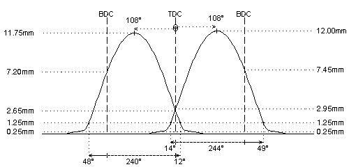 These cam profiles are adapted for O.E.M. mechanic tappets (37.5mm) with lash adjustment shim (33.0mm) between cam and follower ("shim over" type).