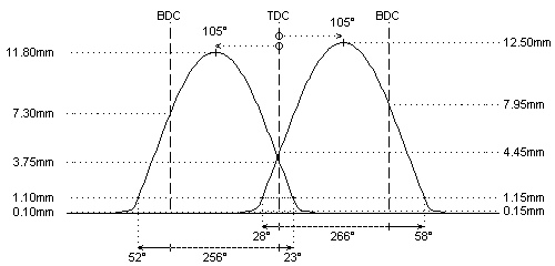 distance between valve and piston 1.0mm (pref. 1.5mm). check 5-15° before TDC on exhaust, and after TDC on intake