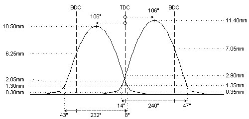 distance between valve and piston 1.0mm (pref. 1.5mm). check 5-15° before TDC on exhaust, and after TDC on intake