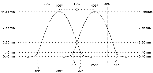 distance between valve and piston 1.0mm (pref. 1.5mm). check 5-15° before TDC on exhaust, and after TDC on intake